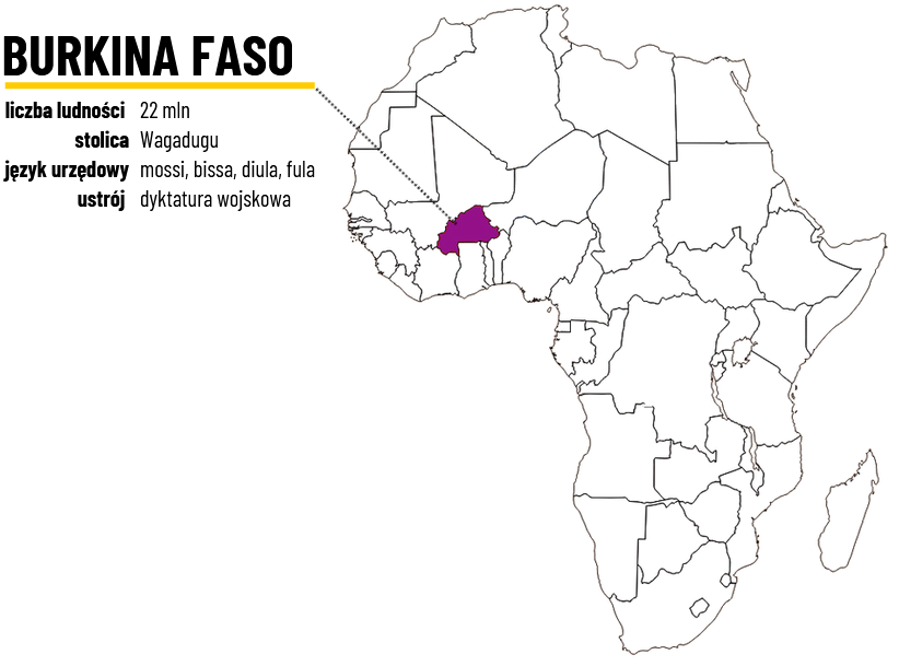 WPROWADZENIE | Burkina Faso leży w tym miejscu na mapie Afryki, w którym żółty kolor Sahary zmienia się w coraz zieleńszy kolor sawanny. Geografowie zwą go Sahelem a rozciąga się on na wiele krajów – Niger, Mali, Sudan oraz Burkinę, gdzie Sahel jest jednym z północnych regionów administracyjnych. Burkina to kraj zróżnicowany tak klimatyczne, jak i społecznie. Zamieszkuje go przynajmniej 10 grup etnicznych o nazwach Polakom nic nie mówiących – np. Mossi, Fulani, Gurunsi. Na różnice językowe nakładają się kulturowe, a na nie – te religijne. Podczas, gdy prawie każdy Fulani wyznaje islam, jeden na trzech Mossi może wyznawać chrześcijaństwo albo jedną z tradycyjnych, animistycznych religii. Wydaje się, że wszystkich mieszkańców Burkiny Faso, którzy o sobie mówią “Burkinabé”, łączy tylko sucha ziemia, po której stąpają.